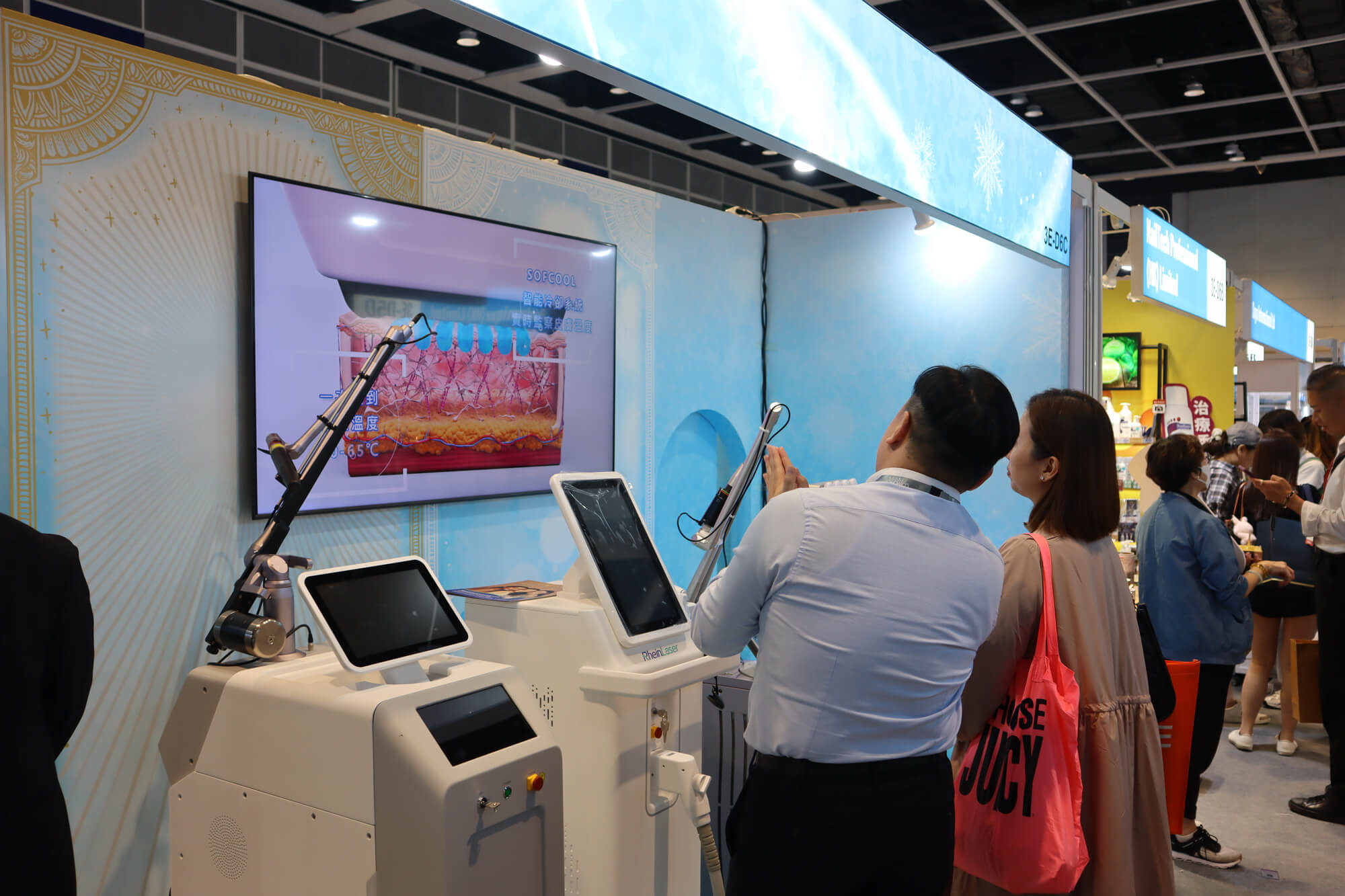 Rhein Laser collaborated with Demandfit Limited, a Hong Kong team with more than ten years of experience in selling medical beauty equipment, to participate in the Cosmoprof Asia 2024. There was many equipment for lifting, firming, reducing fine lines, anti-aging, whitening, tattoo removal, etc. At this exhibition, Rhein Laser's pico-second laser equipment and hair removal equipment were debuted. Its high cost-effectiveness and professional product features attracted many people who are trying to operate beauty salons, medical beauty centers and medical beauty clinics for the first time to come and exchange ideas. Testing
